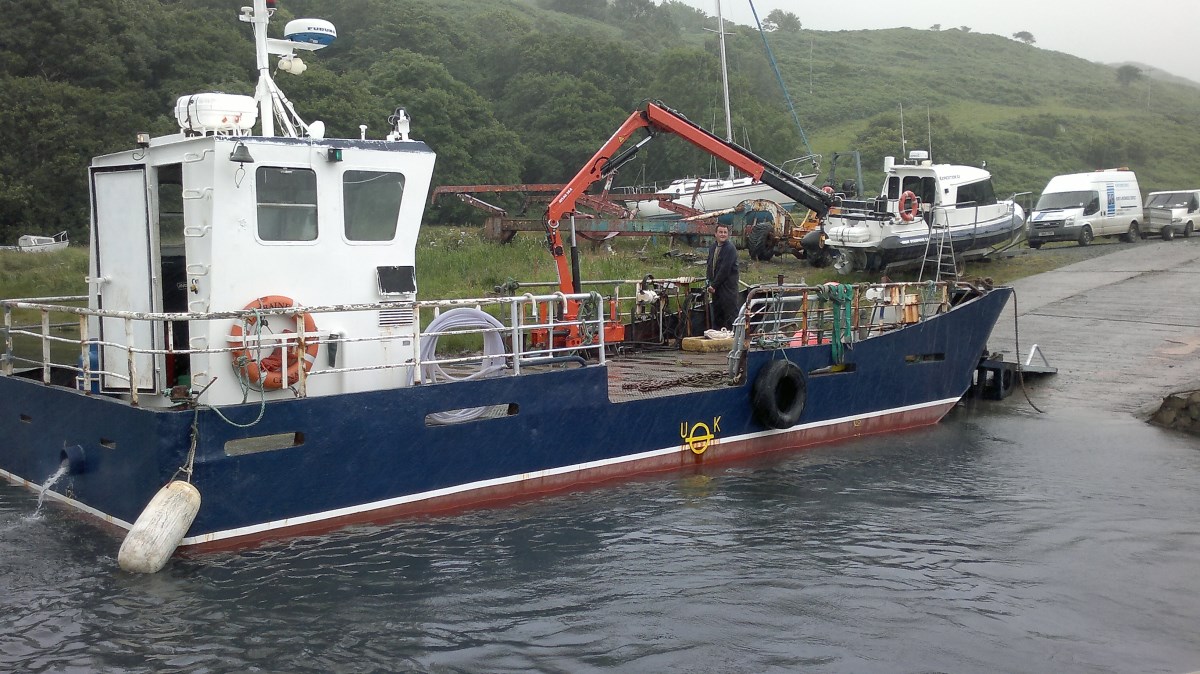 The landing craft is a steel work boat which incorporates a generous safe working platform to carry out all types of work. The Atlas hydraulic crane has the ability to carry out a wide range of duties safely and competently.